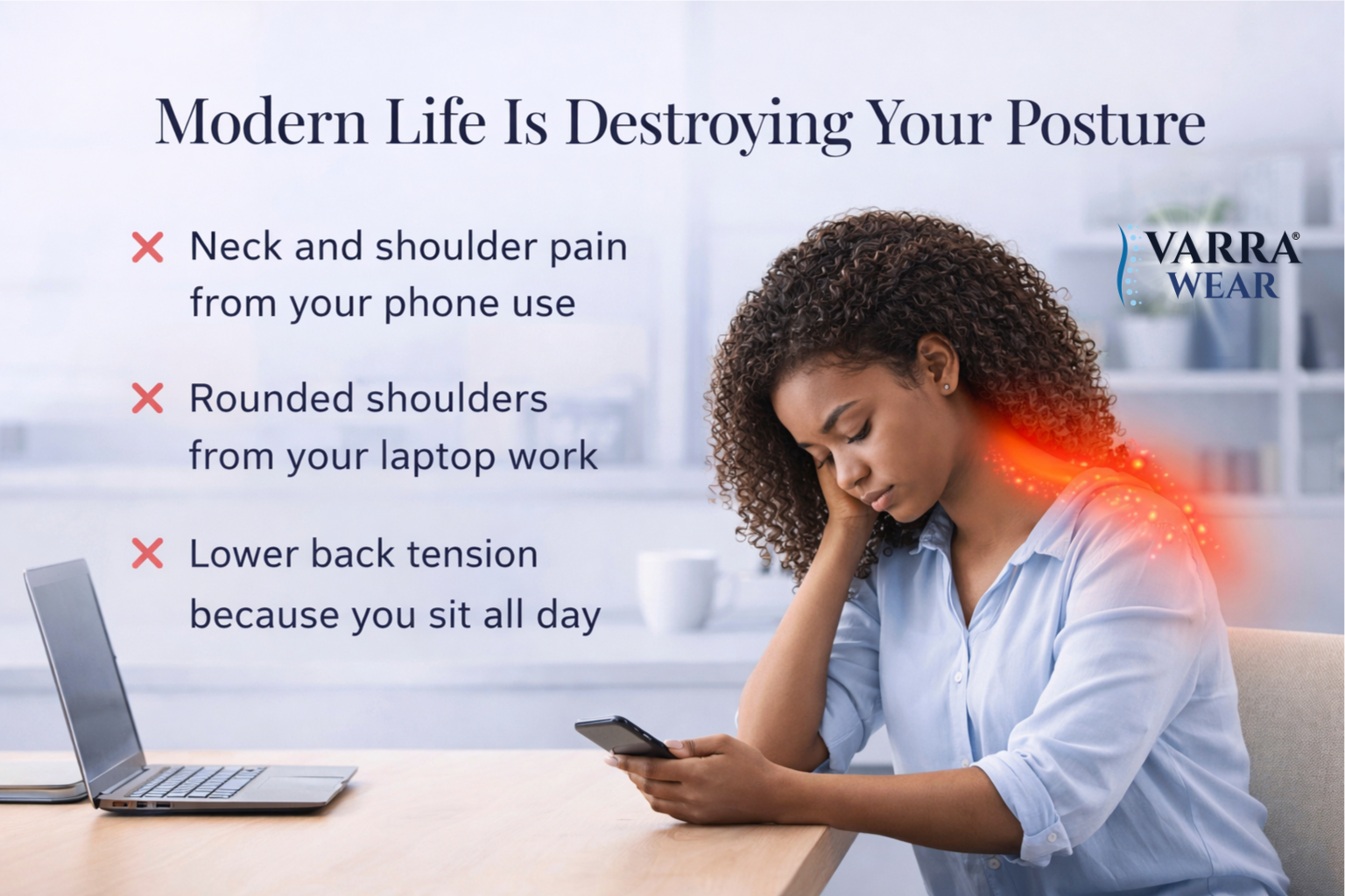 "I sit behind a laptop all day and VARRAWear fixed my posture faster than expected."